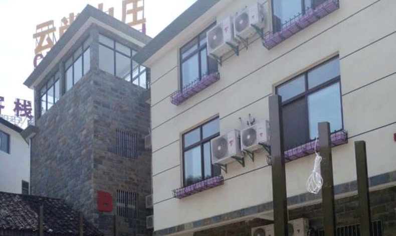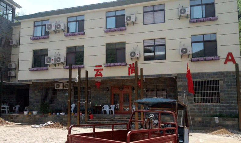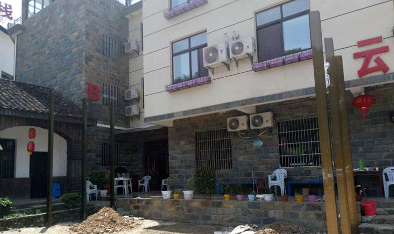 安徽省宣城市云尚山莊,一處快完工的休閑山莊,因考慮到雨天和烈日,在門口加裝遮陽雨棚。