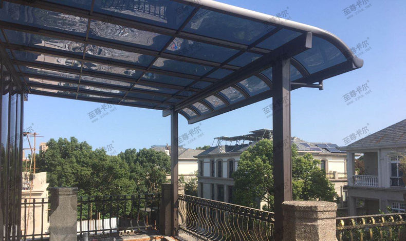 至尊卡爾雨棚一直秉承著一個目標,那就是用真心贏世界,也就是用優質的品質贏得客戶的信賴和認可。因此至尊卡爾雨棚采用的材料一定是目前市場上最好的。現在至尊卡爾主打鋁合金骨架+耐力板。這種材質的優勢,在目前看來還是很明顯的:鋁合金相較于鋼結構,更不容易腐蝕、生銹,不容易掉漆。耐力板,比起陽光板,使用壽命更長,不容易老化、黃化、脆化。比起玻璃來,不容易漏雨,不會破碎,硬度更高。