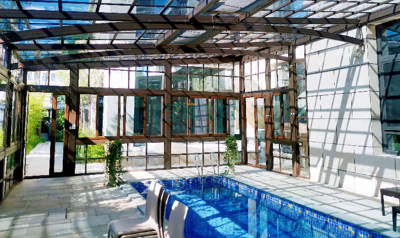 來看看陽光泳池棚的真實(shí)案例圖片吧。