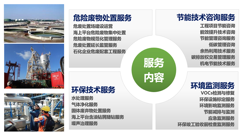 公司發(fā)展初期,主要依托中海油上中下游節(jié)能環(huán)保市場需求,布局危廢產(chǎn)業(yè),打造國家示范級石化園區(qū)危險廢物處理處置配套工程。