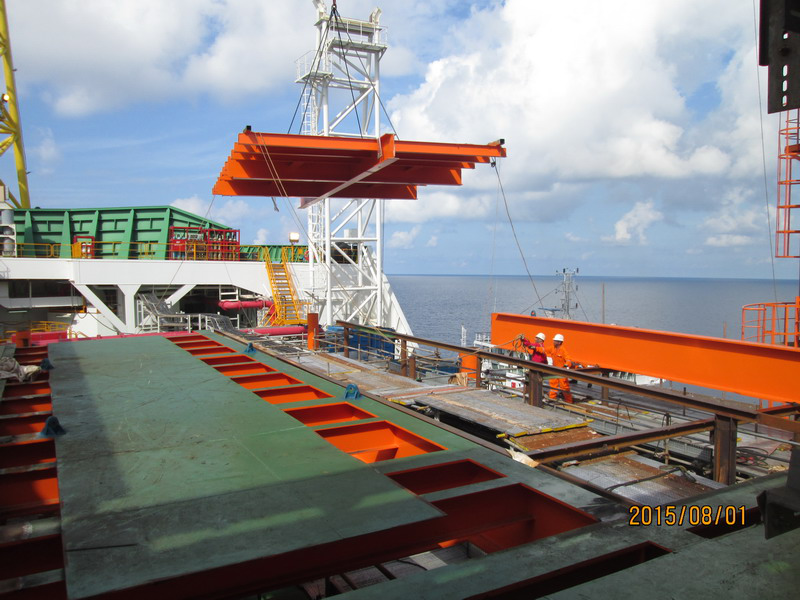 該平臺由中國船舶工業集團公司第七〇八研究所設計、上海外高橋造船有限公司承建;深圳市盛福機械設備有限公司(以下簡稱深圳盛福)參與建造,并承攬了該平臺甲板以下所有管線和設備的安裝及調試服務;涉及管線2萬多米,種類囊括玻璃鋼、銅鎳、不銹鋼、雙相鋼、液壓等管線;安裝和調試的主要設備有:柴油機,推進器,各種泵閥等,工期歷時36個月。該平臺的建成,為深圳盛福在中海油未來幾年的業務承攬和發展,打下了堅實的基礎。