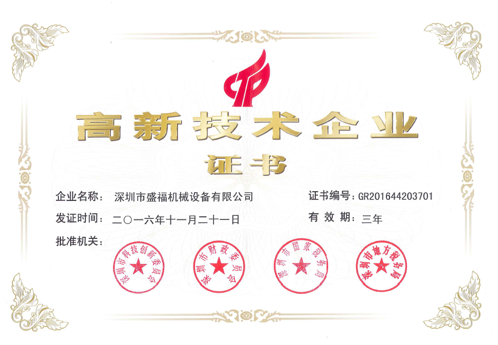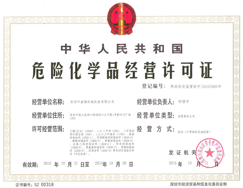高新技術企業證書 、深圳市盛福機械設備有限公司-危險化學品經營許可證
