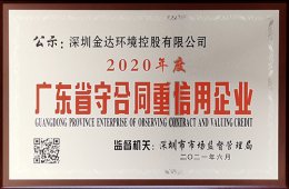 喜訊!金達(dá)環(huán)境榮獲廣東省“守合同重信用” 企業(yè)稱號(hào)