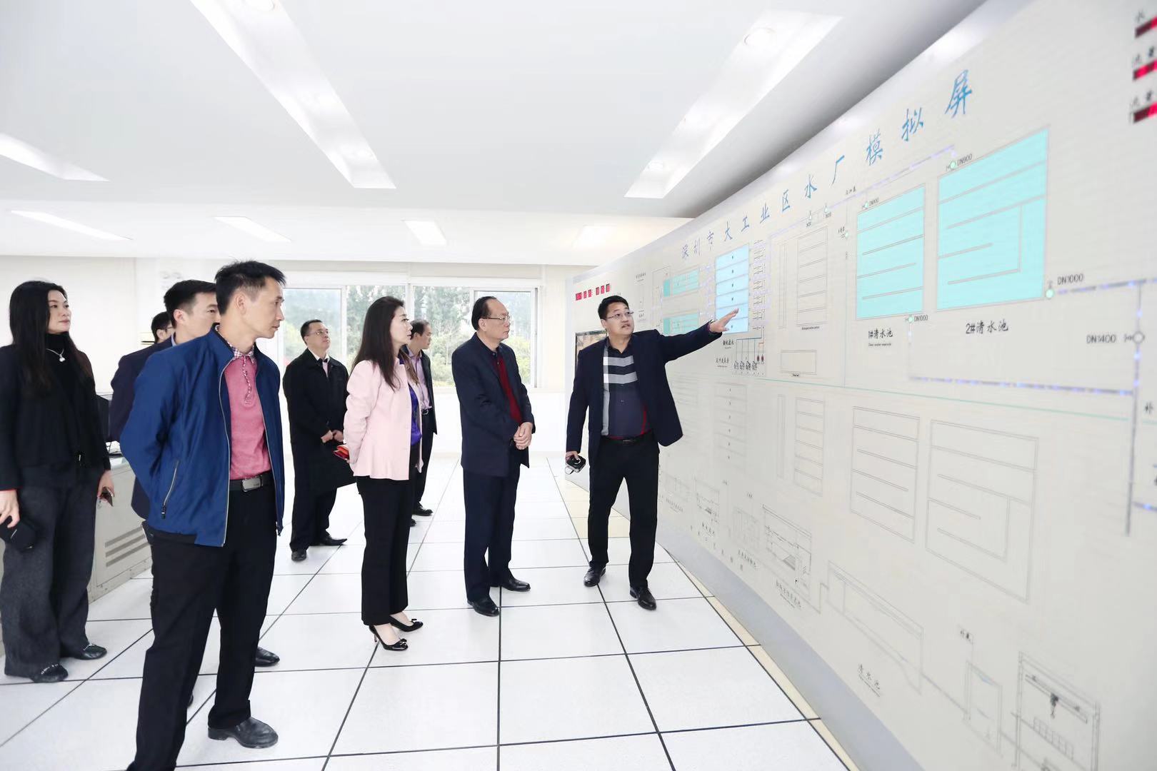 劉學(xué)聰書記一行首先前往大工業(yè)區(qū)水廠進(jìn)行參觀,對(duì)水廠制水工藝及現(xiàn)場(chǎng)管理進(jìn)行實(shí)地考察了解,隨后現(xiàn)場(chǎng)觀摩大工業(yè)區(qū)水務(wù)公司排水管網(wǎng)運(yùn)營(yíng)維護(hù)作業(yè)情況。在會(huì)議室座談交流中,工業(yè)區(qū)水務(wù)公司總經(jīng)理王春雷詳細(xì)介紹了公司供排水一體化運(yùn)營(yíng)模式的情況、公司近幾年取得的成效及未來發(fā)展規(guī)劃等情況。劉學(xué)聰書記一行還考察了深圳金達(dá)環(huán)境控股有限公司。