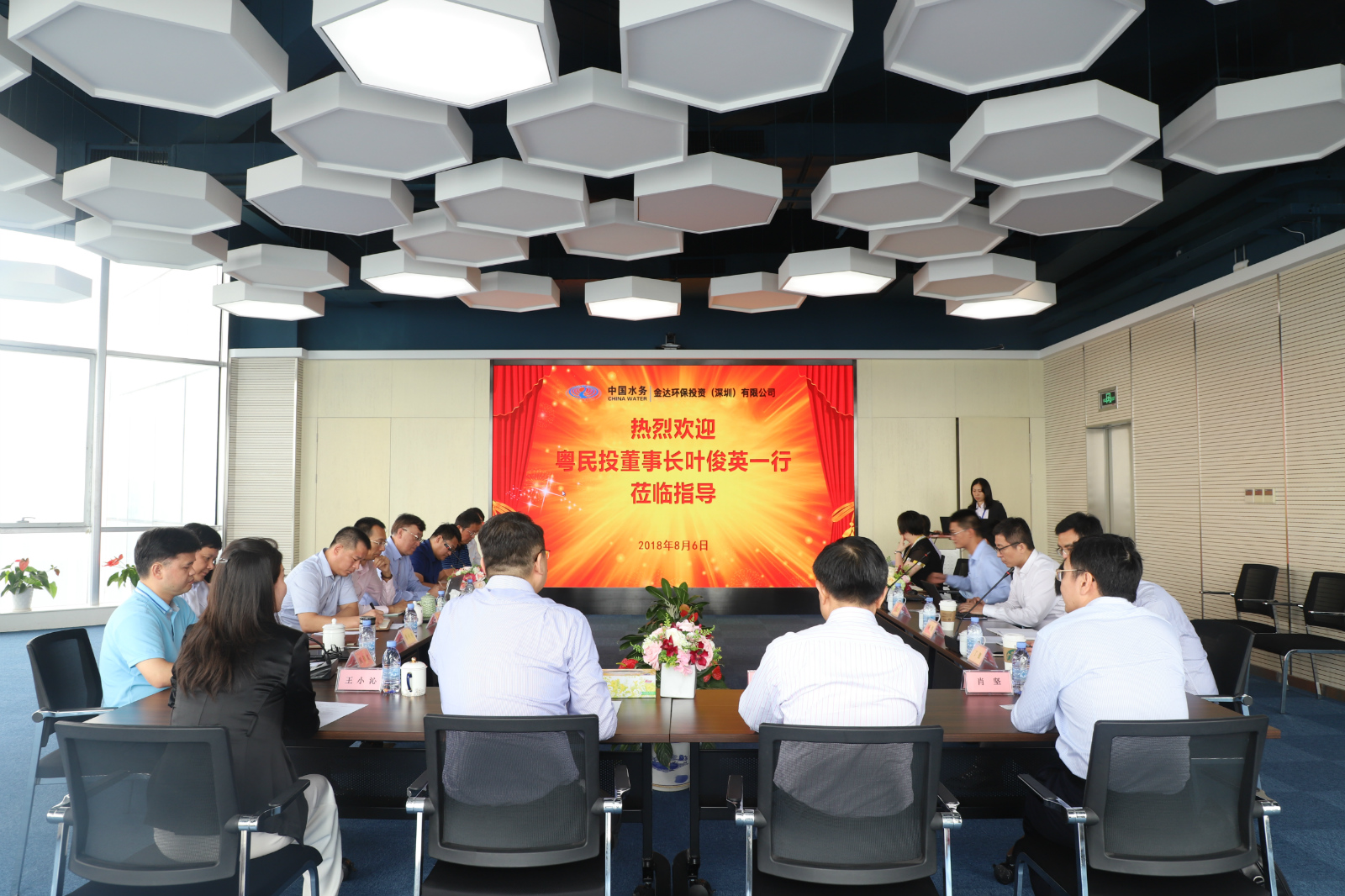 8月6日,粵民投董事長葉俊英、總經(jīng)理肖堅、高騰控股總裁丁靚等一行5人蒞臨金達環(huán)??疾?,受到公司董事長李中、副董事長王小沁、總經(jīng)理黃偉才等的熱情歡迎。