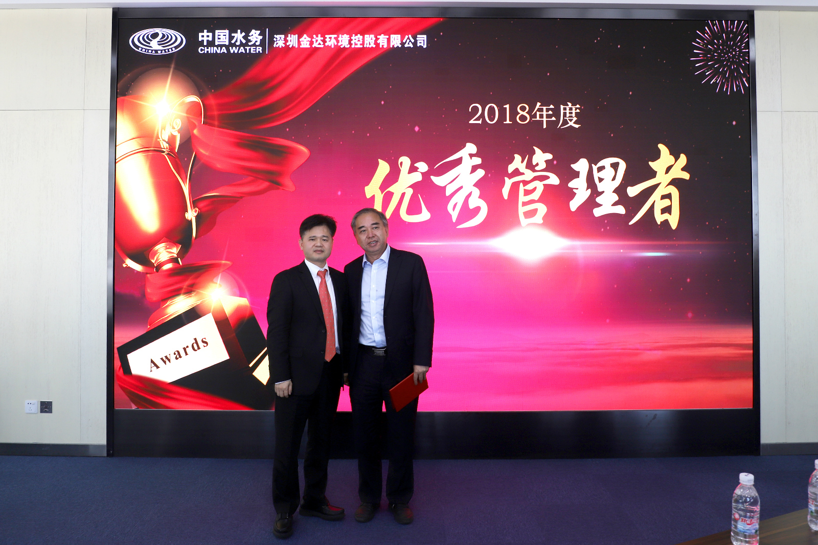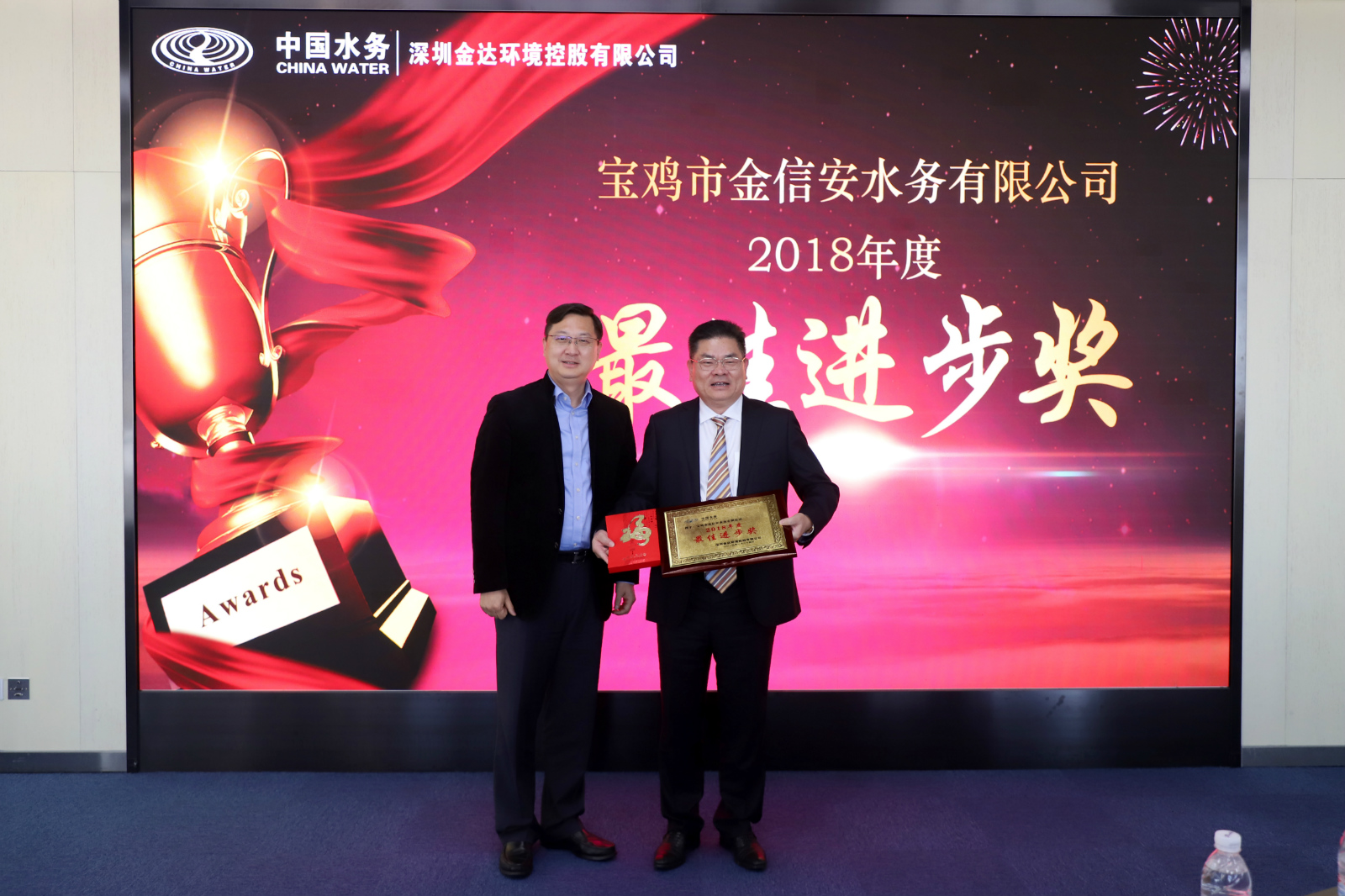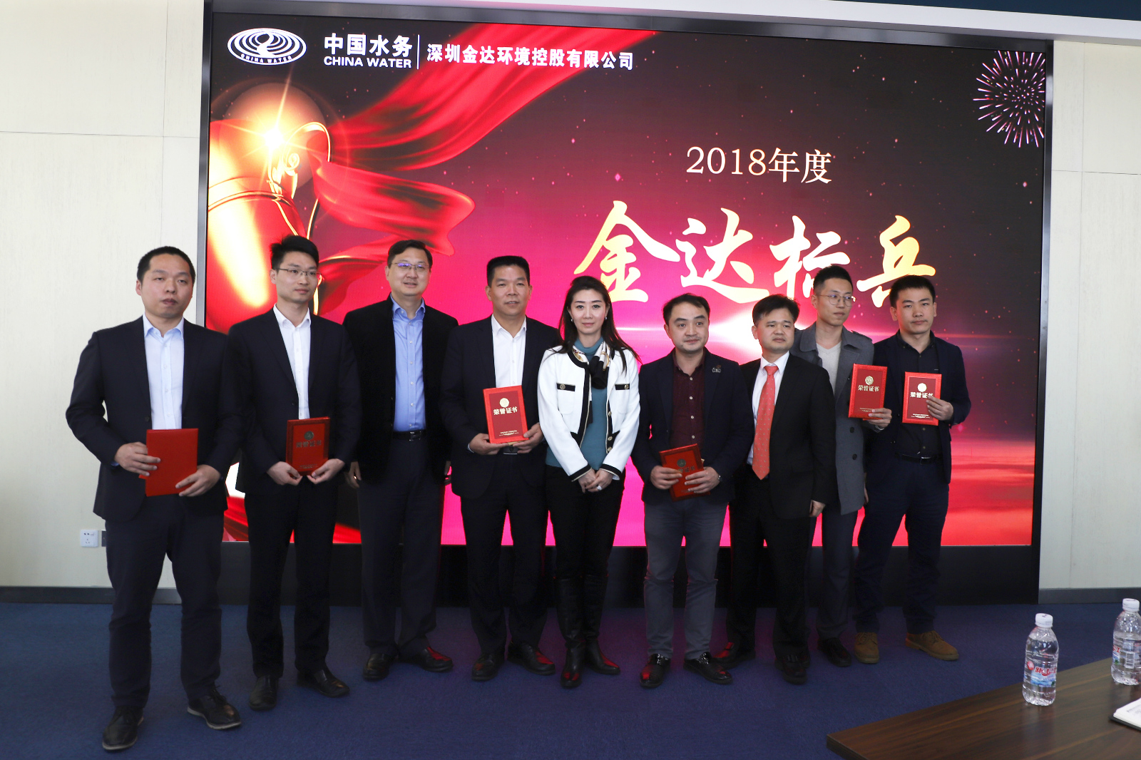 葉波清副總經(jīng)理宣讀了表彰決定。與會領(lǐng)導(dǎo)為獲得“金達標兵”、“優(yōu)秀管理者”等稱號的先進個人和獲得“市場開拓獎”、“最佳團隊獎”、“最佳進步獎”、“最佳效益獎”的先進單位頒獎。寶雞金信安總經(jīng)理付林、銀龍建設(shè)行政人事部經(jīng)理胡穎英、中海環(huán)保項目組工程師王越等獲獎代表作了發(fā)言。