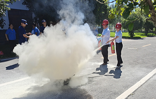↑ 金達環境旗下的萬年縣中水環保有限公司邀請萬年縣消防大隊人員到廠區開展消防安全知識培訓和消防演練實訓。