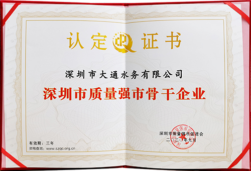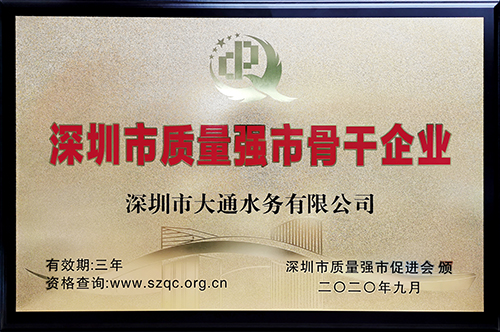 近日,由深圳市質量強市辦指導、深圳市質量強市促進會主辦的“學習習近平總書記在深圳經濟特區建立40周年慶祝大會上重要講話精神暨深圳企業高質量發展分享會”成功召開,大會對第七屆“深圳市質量強市金質獎章”獲獎企業家和第五批“深圳市質量強市骨干企業”進行了表彰。深圳金達環境控股有限公司旗下的深圳市大通水務有限公司,憑借濃厚的質量文化、突出的質量管理能力、深厚的質量基礎優勢、以及對深圳城市質量提升和質量惠民做出的貢獻,獲頒“深圳市質量強市骨干企業”殊榮。