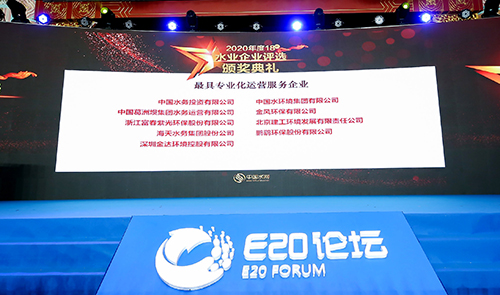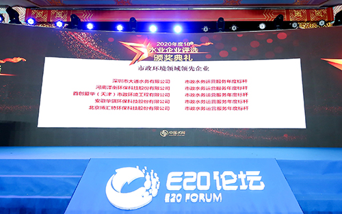 該年度評選是由國內環(huán)境產業(yè)縱深服務平臺“E20環(huán)境平臺”主導主辦,由E20評審團、專家評審團、行研評審團、媒體評審團、網(wǎng)絡評審團共同形成的大評審團,根據(jù)企業(yè)市場業(yè)績、財務狀況、創(chuàng)新能力、新聞關注度、品牌能力、企業(yè)家榮譽六大維度綜合評出,在水務行業(yè)具有較高的權威性和影響力。